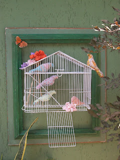 Aqui ele se inspirou em alguns posts que já publiquei, usando moldura vazia + pássaros de tecido + gaiola reciclada. Eu adoro gaiolas, mas para decorar, NUNCA para prender passarinho , acho cruel demais prender um ser que pode voar em liberdade até pro outro lado do mundo, numa jaulinha minúscula! É isso aí: pássaro peso? Vou não, quero não , pode não rsrsrsrs